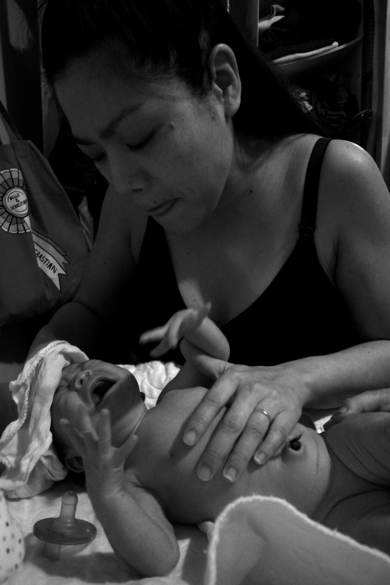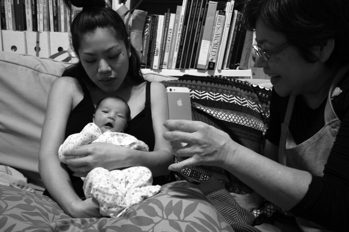 February 6, 2013 First Bath Momo settles into Brooklyn and gets her first bath. Momo and Mom reading baby instructions Talking to Nick-san via skype