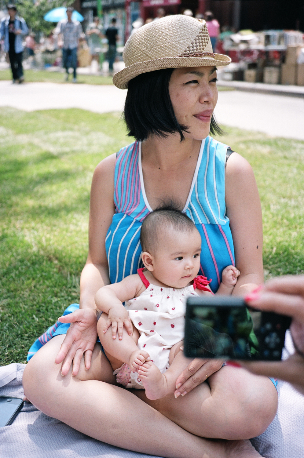 July 14, 2013 Summer Socializing Lots of early summer time socializing with Momo and friends, especially since the little one travels so well and is so great around both friends and crowds. Sunset Park cats Nata, Michi and Momo in Sunset Park lauhala hat crew Momo’s quiver of hats