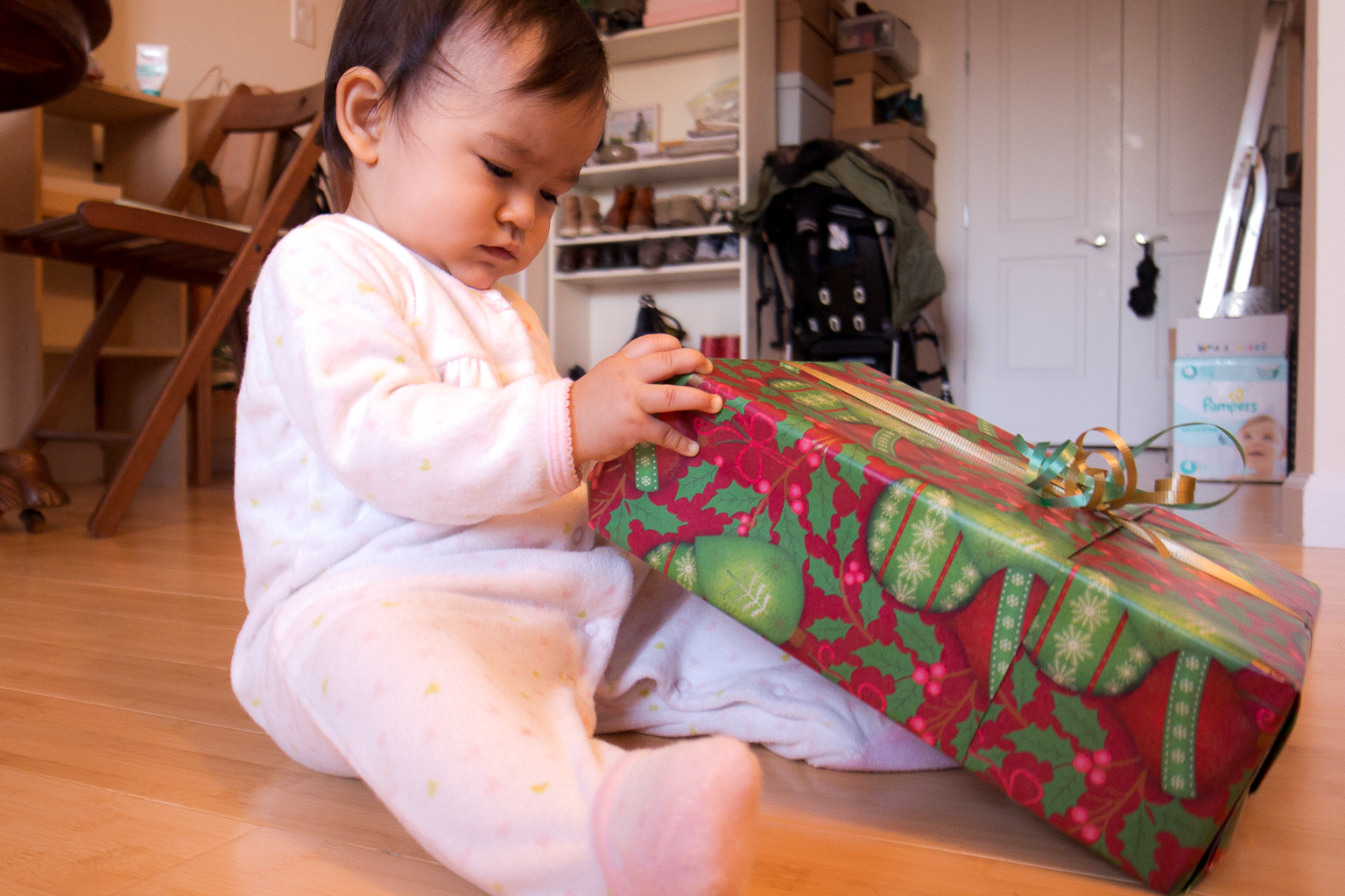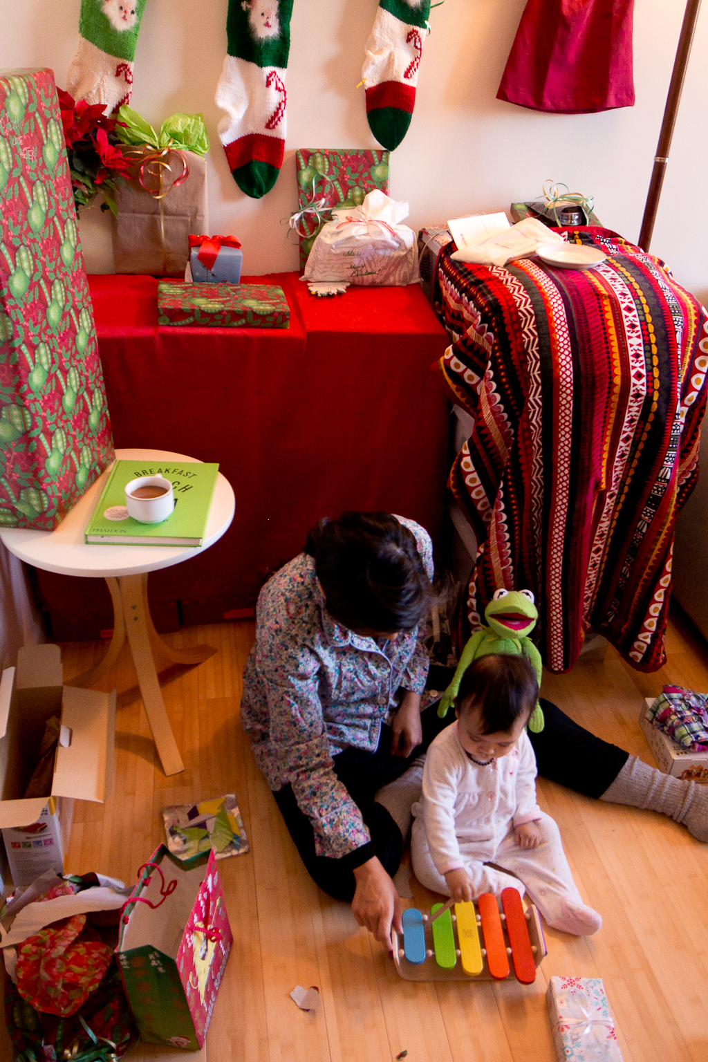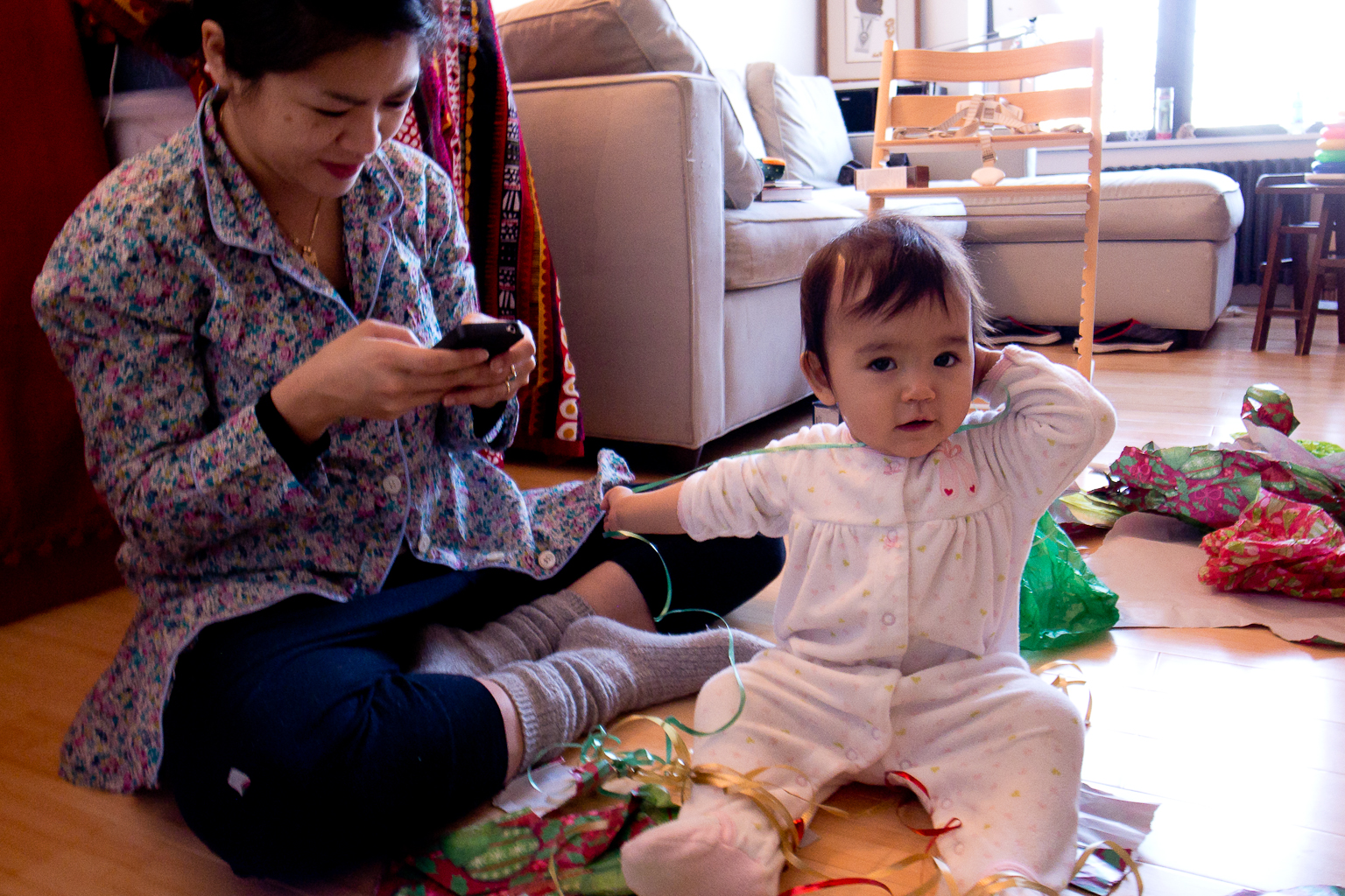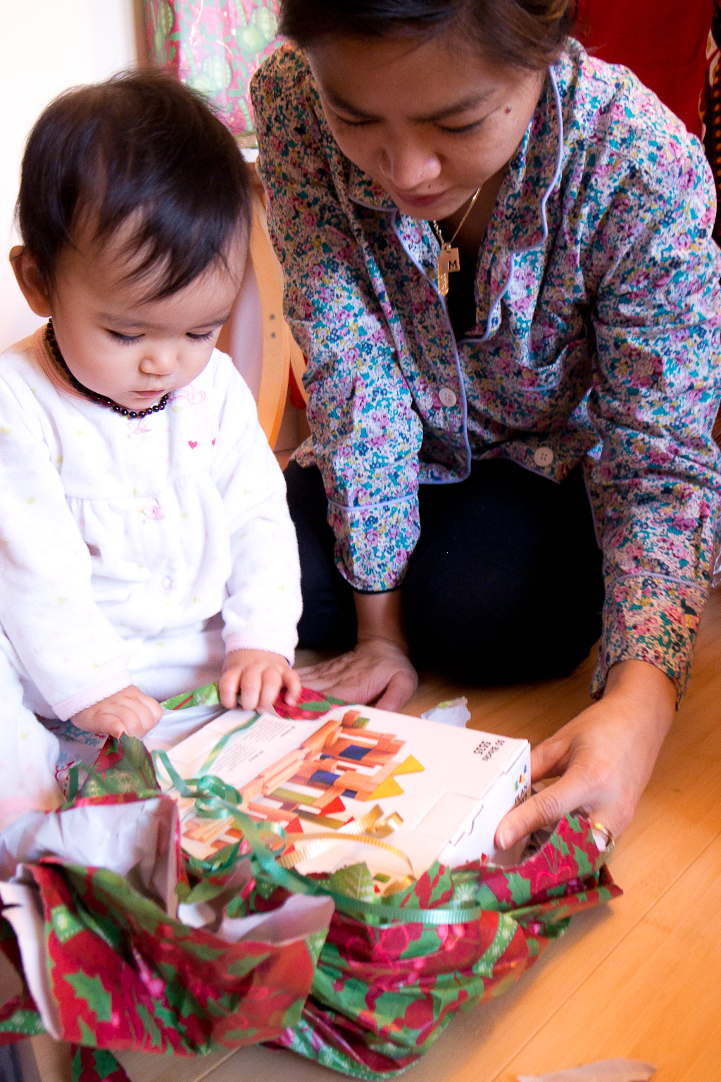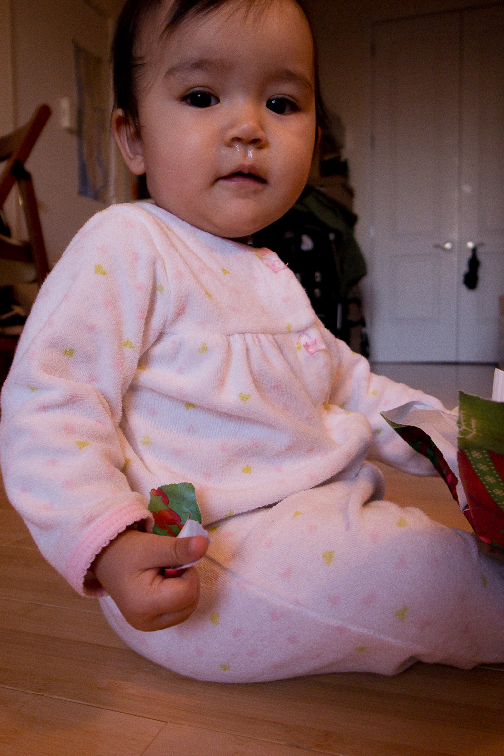 December 25, 2013 A Very Momo Christmas Momo did not quite know what to think of her first Christmas but she certainly had a fun time opening our presents and visiting the Waterman’s and the Steed’s households later in the evening.