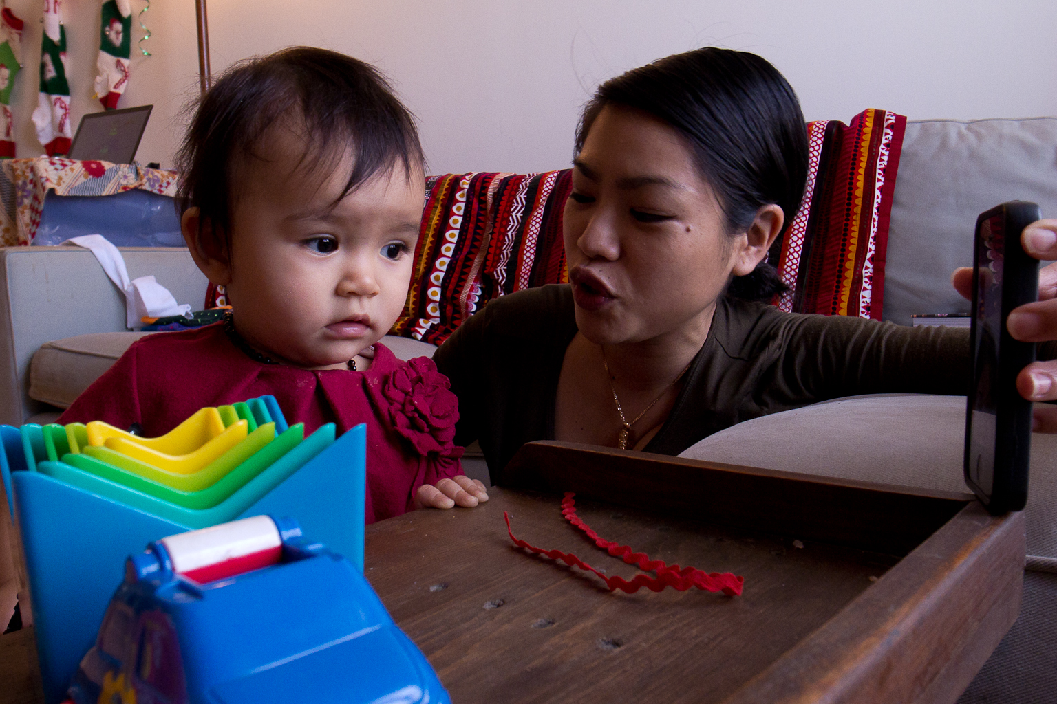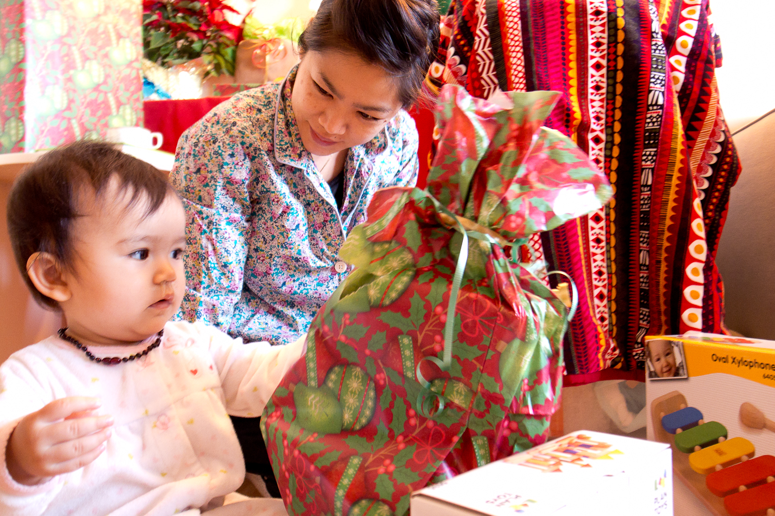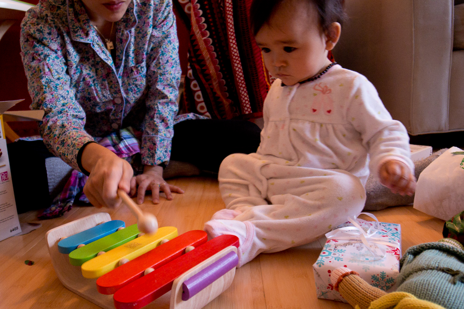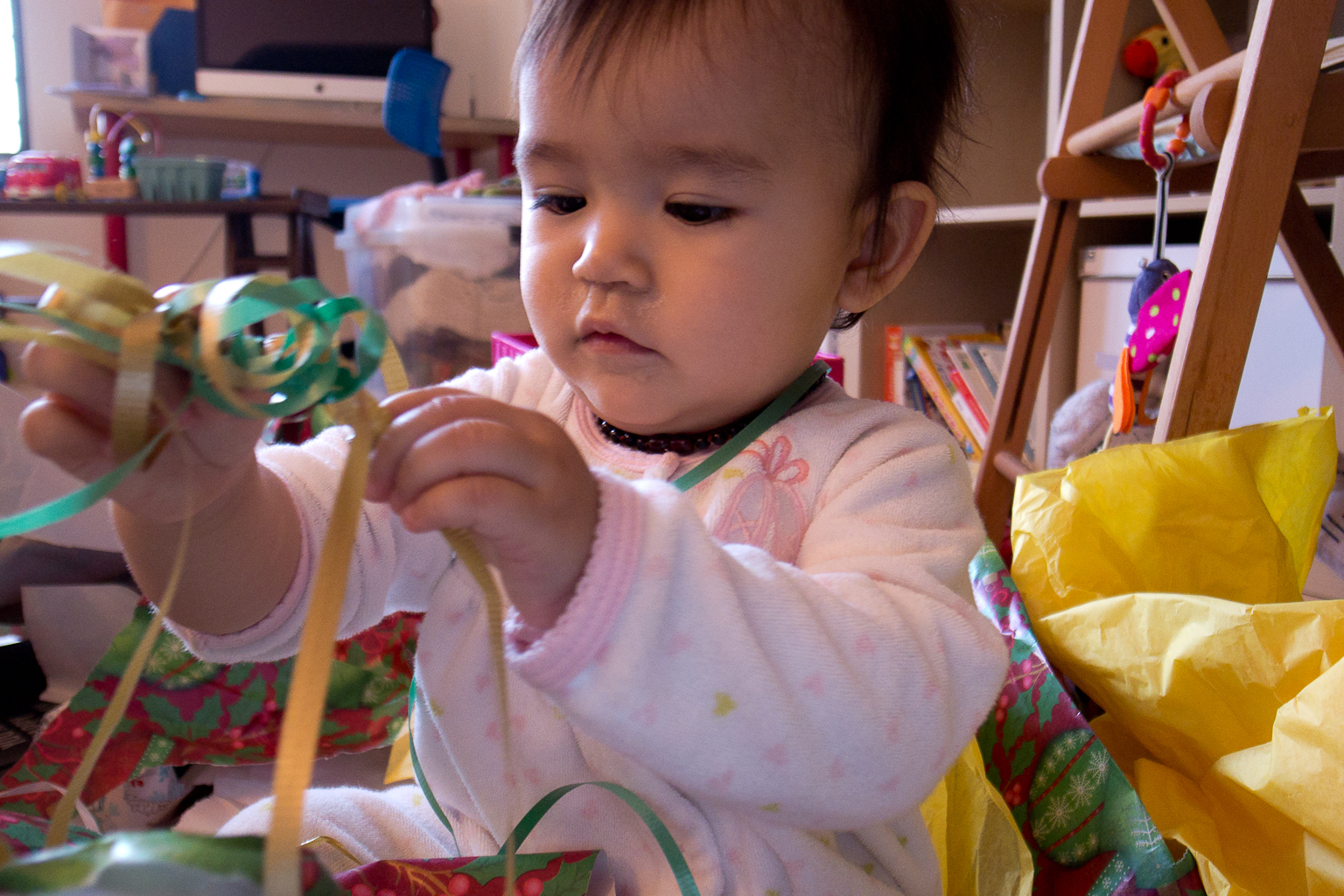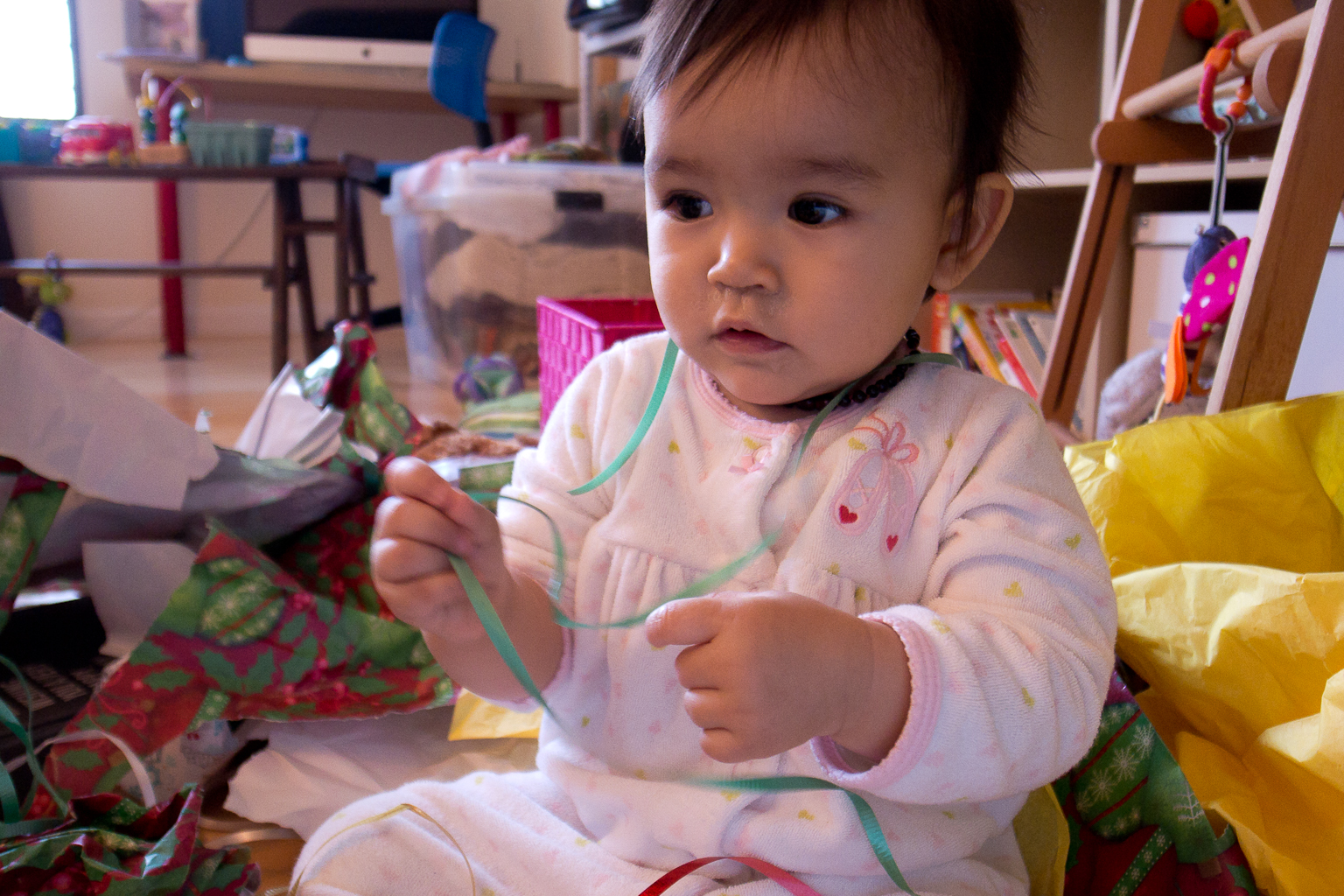 December 25, 2013 A Very Momo Christmas Momo did not quite know what to think of her first Christmas but she certainly had a fun time opening our presents and visiting the Waterman’s and the Steed’s households later in the evening.