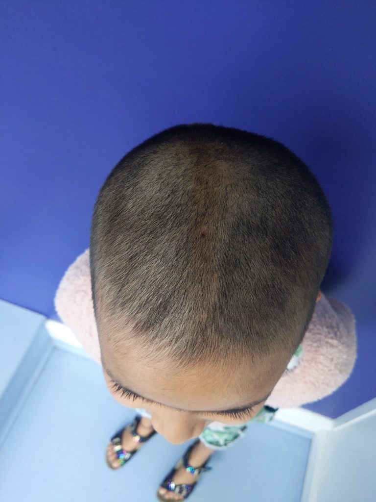 Momo got the buzzcut she has wanted to show solidarity with Auntie Margie.