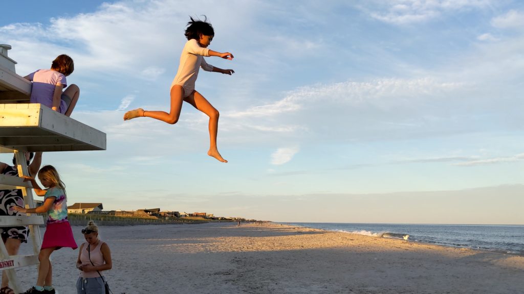 We finally were able to spend several days at the Snoopy House aka the Puppy House. We spent lots of time jumping off the lifeguard chair which was high enough to be scary not to so high were we could hurt ourselves — seriously anyway. Momo also roamed around the island by herself and even bought groceries. She was also not the youngest! That honor now goes to Violetta.