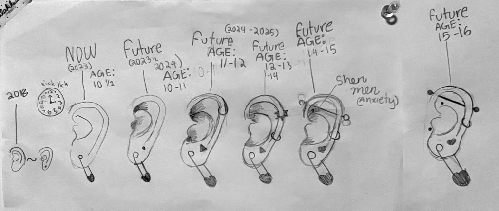 After 5 years of a single earring in each ear Momo finally gets the double. No numbing agents so it was painful, according to Momo.